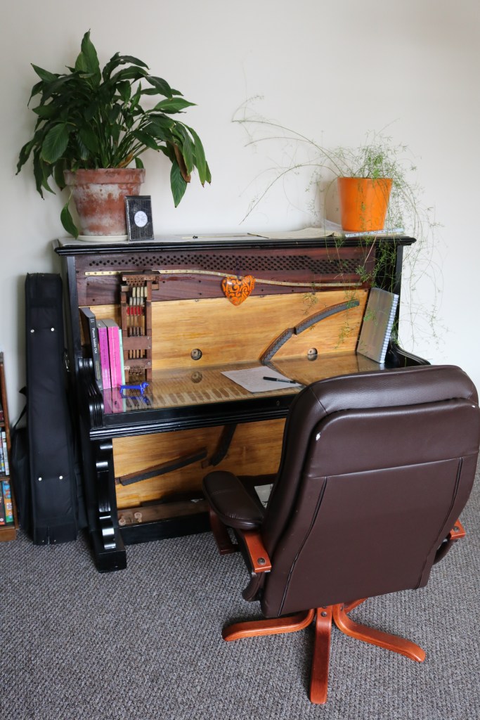 Over the years I have rescued many pianos from the scrap heap. Whether this is through restoring them or simply doing a day’s work in a domestic setting. You may find a full restoration is comparable in price to buying a new piano (in many cases a lot cheaper). Restoring rather than buying new means far fewer resources go into obtaining a quality instrument. Sadly though, not all pianos can be saved. However, there are things which can be done, such as repurposing the (usually quality) wood and action parts for creative or artistic purposes, or reusing the whole case. Here is a desk I made out of a ruined piano!